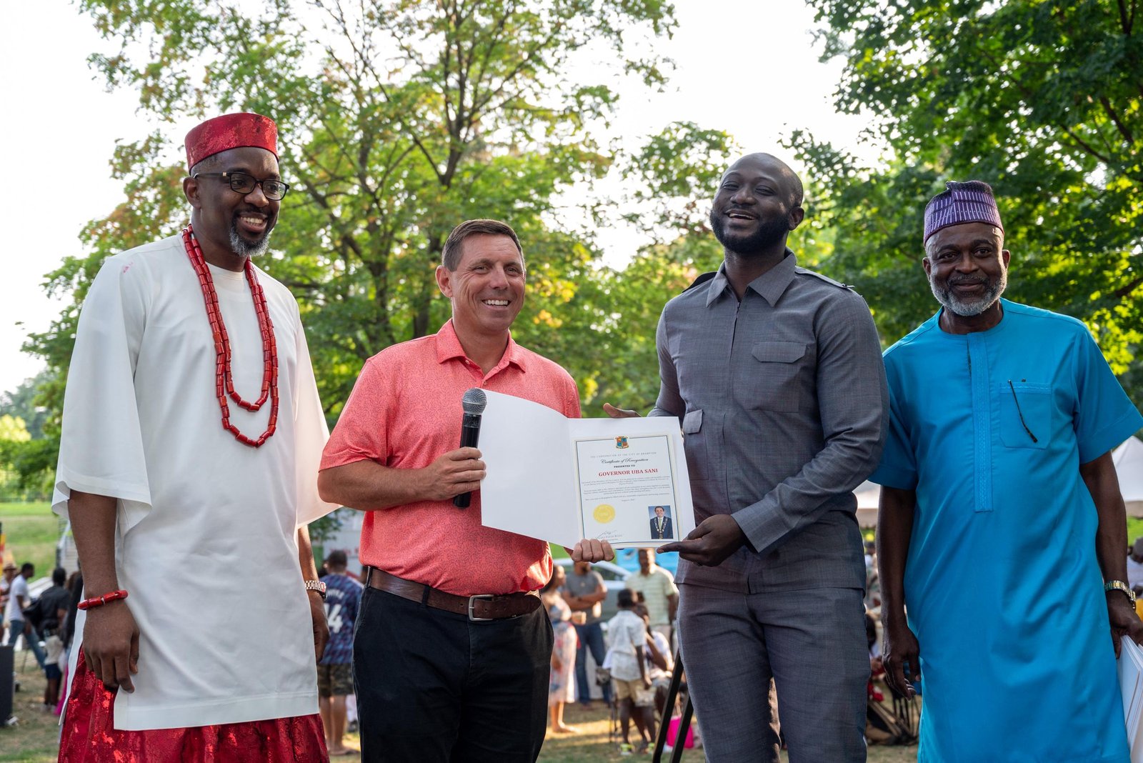 The Mayor of the City of Brampton, Canada, His Worship Patrick Brown, has honoured Kaduna State Governor, Uba Sani, with the Corporation of the City of Brampton Certificate of Recognition at the Afro Commerce Connect & Flavours of Nigeria Festival. The award was presented in recognition of Governor Sani’s developmental strides and efforts to improve security in Kaduna State.